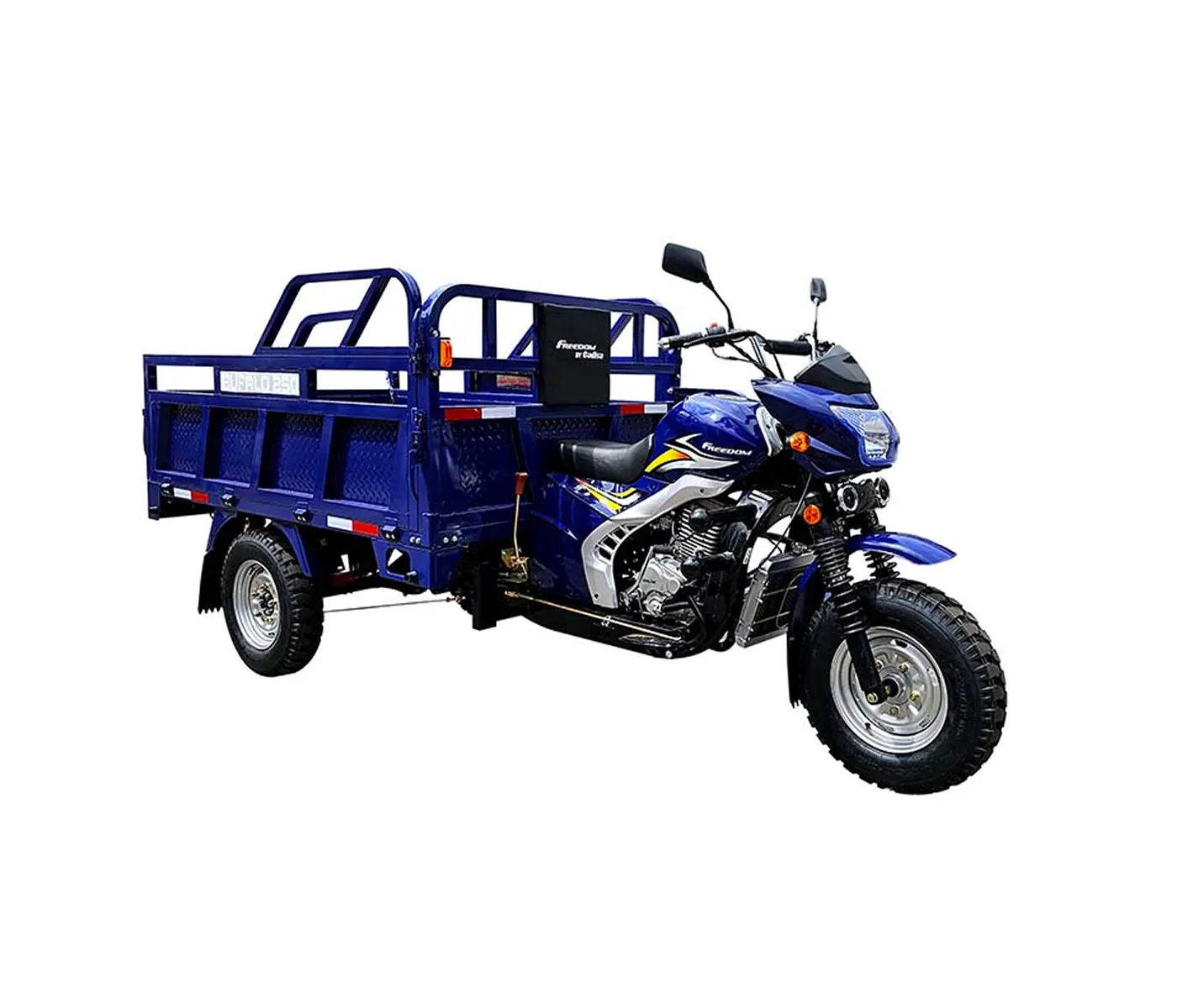 Explora las características de la moto de carga Búfalo 250, una trimoto con una palangana reforzada que se convertirá en tu mejor aliada para transportar una amplia variedad de objetos.